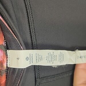 Pre-owned lululemon cropped capri yoga leggings in a womens size 4, bunch on sides, floral pattern, stay put waist. In excellent condition, no holes, no stains, no snags.
