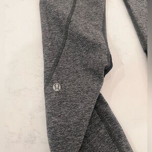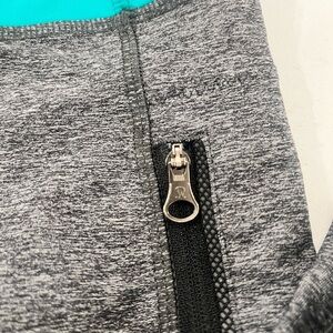 Lululemon Cropped Heathered Gray and Black with Teal Waistband EUC
