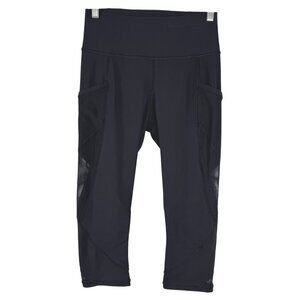 Lululemon Cropped Mesh Leggings Womens Size 6 Black Solid High Rise PT-2514