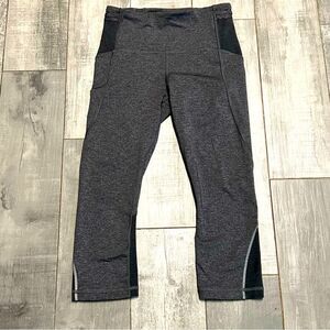 Lululemon Cropped Wunder Under Heathered Gray Scallop Waist with Color block Detail Capri Legging