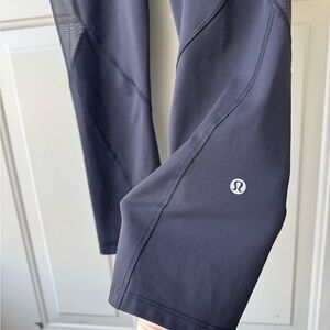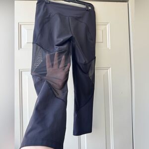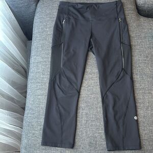 Lululemon Cropped Leggings-Black-Mesh Panels on Legs-Zippered Pockets-Size 8