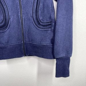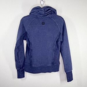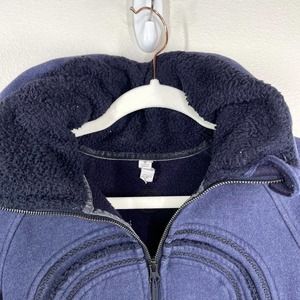 Lululemon Cuddle Up Fleece Zip Athletic Jacket Sz 6 Blue Turtleneck Thumbholes