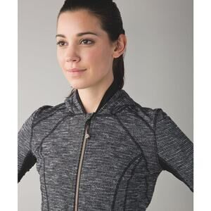 Lululemon Daily Practice Jacket Coco Pique Black White Rose Gold Zipper Size 8