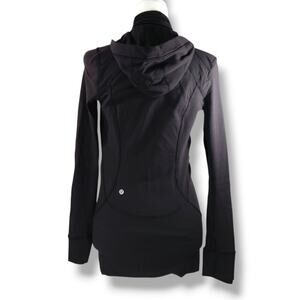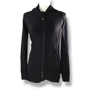 EUC Lululemon Daily Practice Jacket Hooded Full Zipper Thumbhole Zip Pockets Black 6 Athleisure Sporty Minimalist Training