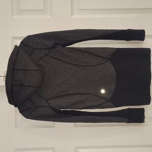 Pull on this soft mid-layer to stay cozy during warm-ups, cool-downs and chill-outs. The hood hides post-yoga hair and keeps our head in the game.
