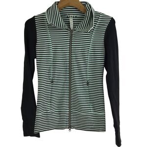 Lululemon Daily Yoga Mint Moment Full Zip Black Green Stripe Preppy Jacket Sz 4