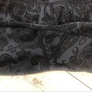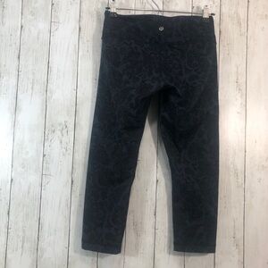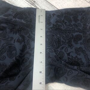 Blue with black damask design, missing sizing thinking a 4 so PLEASE look at pictures for measurements, crop length, colors may vary due to lighting, good used condition