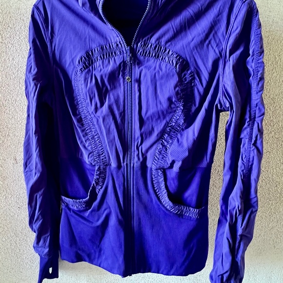 Fully reversible jacket. Bright Larkspur color. Size 12. Like new, only worn 3-4 times. Missing drawstring for the hood.