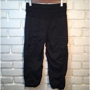 Older style dance studio crop length with tie that is tied at hems. Rise is 8” inseam is 20.5”. Tagged size 2 dot in pocket. 7oz
