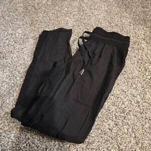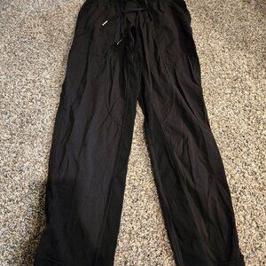 Lululemon Dance Studio Crop pants. These are black and a size 2. They measure as follows: waist-25 inches, hips-28 inches, rise-9.5 inches, and inseam-25 inches.