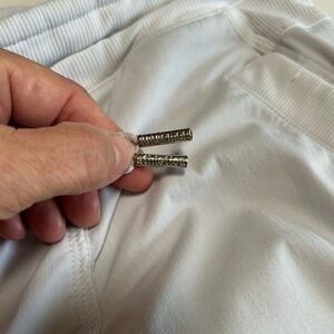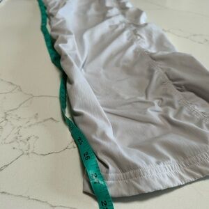Rare fully lined Dance Studio pants. Ideal for workouts or casual wear. Features a relaxed fit and drawstring waist. Color is a light oyster gray. Slight marks on the upper front as shown in photo and a bit darker mark on one posterior leg at the bottom. Not really noticeable when on. I am pretty sure these are a size 6, but go off of the measurements in photos.