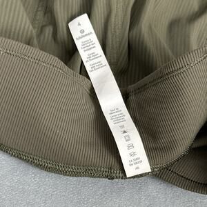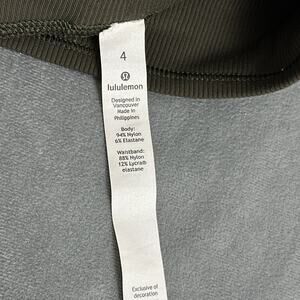 Listed is a pair of Lululemon Dance Studio Pants in Dark Olive Pinstripe, size 4.