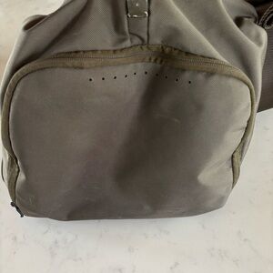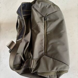 Multiple pockets, sides unzip and can store wet or sweaty clothes, minor signs of wear, soft shoulder straps, all zippers work great, still in great condition!