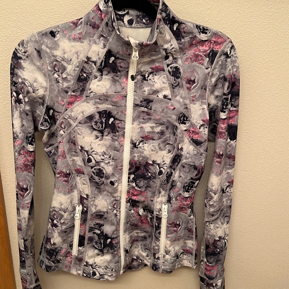 Lululemon Define jacket in excellent condition. Worn only a few times. Fabric includes greys, pinks and white. Smoke-free home.