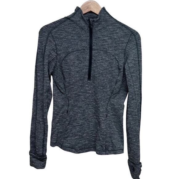 Classic Lululemon Define half zip jacket in heathered gray stripe.