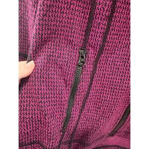 Lots of stretch and great texture. Side zippered pockets. Fold-over cuffs with thumbholes. Hair tie zipper pull.