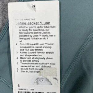 Lululemon Define Jacket Womens 6 Blue Green Luon Full Zip Thumbholes Pockets Gym