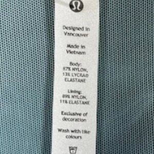 Body: 87% Nylon, 13% Lycra Elastane; Lining: 89% Nylon, 11% Elastane