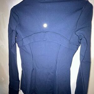 Elegant midnight blue jacket featuring a sleek gold zipper. Ideal for everyday style.