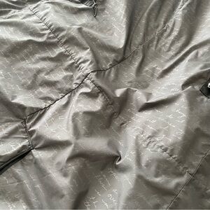 Is in excellent condition! The only signs of wear are on the hook inside; you can see from the second-to-last picture that it’s sort of peeling off. Otherwise perfect jacket, just getting rid of it bc it never rains where I live lol