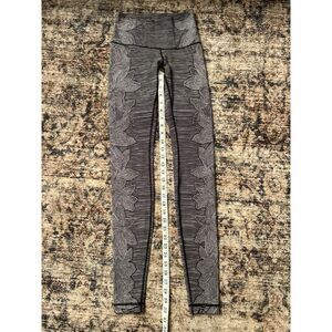 Lululemon Dottie Tribe Gray Floral Stripe Wunder Under Leggings