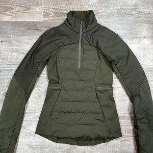 Lululemon Down For It All Pullover Jacket Size 0 Dark Olive Green 1/2 Zip