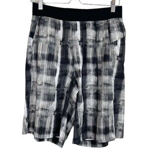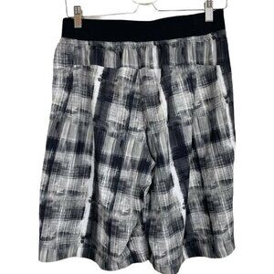 Lululemon Drawstring Pull On Black Gray White Paint Strokes Plaid Men's Size M Shorts