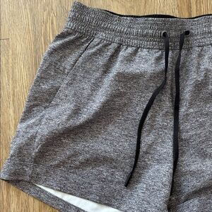 Like- new Casual athletic shorts in soft heathered gray. Elastic waistband with black drawstring.