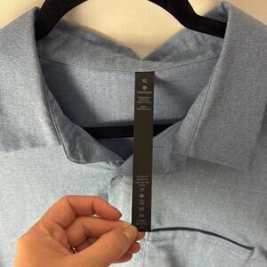 Like New Lululemon Button Down Shirt. This is a men's XL. Nice light blue slightly heathered color throughout. Front zipper pocket. Lightweight and stretchy. Very comfortable shirt! Lululemon logo tag on the lower back waist. Black tag. 100% polyester.