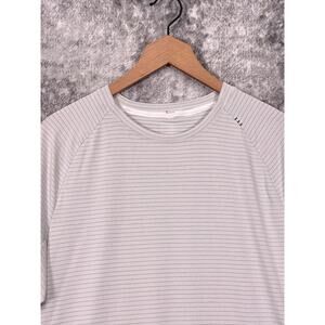 Lululemon Drysense Short Sleeve Shirt Large Mens Gray Striped Curve Hem