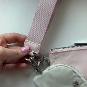 Lululemon dual pouch wristlet in flush pink and cream very good condition with some discoloration