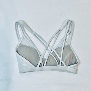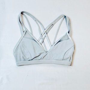 In excellent, like-new condition. You'll be posing pretty throughout your yin yoga session in this strappy-back bra, designed with Mesh fabric panels for breathability. Fabric is sweat-wicking and four-way stretch. Added Lycra® fibre for shape retention. Pockets for optional, removable cups. Intended to provide light support for an A/B cup.