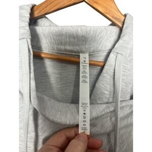 Experience ultimate comfort in this stylish Lululemon wrap-style hoodie. Made from a super-soft, modal blend fabric, this pullover features an asymmetrical snap-button closure, a cozy cowl neck with drawstring, and convenient thumbholes. Perfect for layering post-yoga, travel, or everyday casual wear.