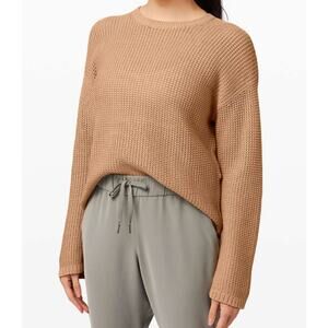 Lululemon Easy Embrace Long Sleeve Sweater Beech Wood Tan Cotton L / XL