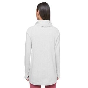 Modal French Terry is naturally soft and breathable. Very light gray. Asymmetrical diagonal zip with snap closures at neckline. Drawstrings. Pockets on waist one with mesh lining. Lightweight and very soft.