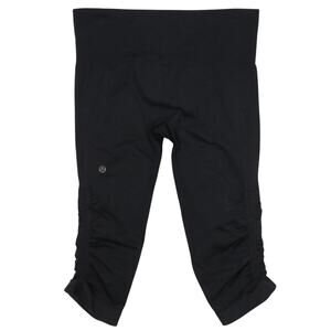 Lululemon Ebb to Street Crop Leggings Ruched Sides Size 6. Black Cropped Leggings with Gathered Ruched Sides.