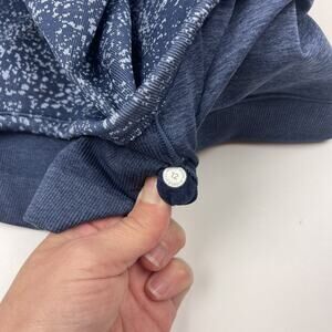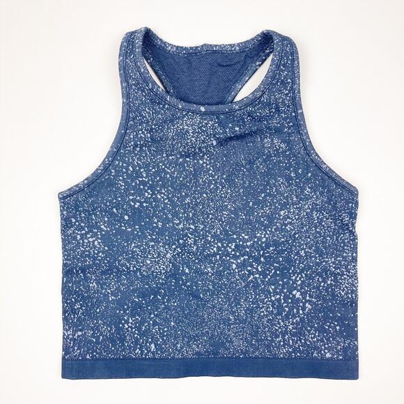 Splattered pastel blue on a mineral blue background cropped racerback Ebb to Street cropped tank from Lululemon in size 12. No flaws! Very good condition or better!