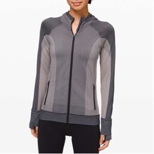 Lululemon Ebb to Train Jacket Seamless Hooded Gray Abstract Black Dark Chrome