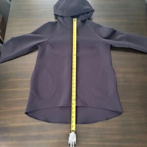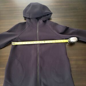 Lululemon Athletica Embrace The Space, Black, Size 8, Sweat Wicking Yoga Loungewear hoodie (for women) is a versatile activewear piece perfect for various activities such as yoga, running, and hiking. This full-zip hoodie features a high neckline, long sleeves, and a hood for added comfort and warmth. The solid black color with the brand's logo accent makes it a stylish choice for the winter, fall, and spring seasons. Made with machine washable material, this hoodie is easy to care for and suitable for everyday wear. Makes a great holiday/Christmas gift for any Lulu fan!