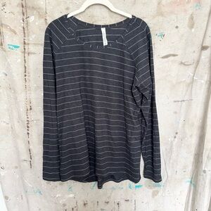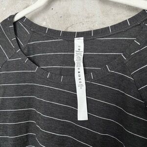 Lululemon Emerald Long Sleeve, Short Serve Stripe Heathered Black White