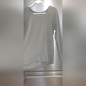 Lululemon Emerald Long Sleeve T-Shirt Modern Stripe Heathered Black White L-XL