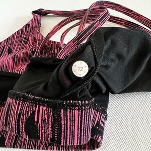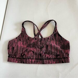 preowned (MISSING REMOVABLE CUPS) Lululemon Energy Bra Down Pour Electric Coral Pink Black Size 12