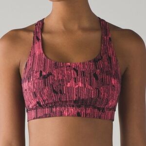 Lululemon Energy Bra Down Pour Electric Coral Pink Black Size 12