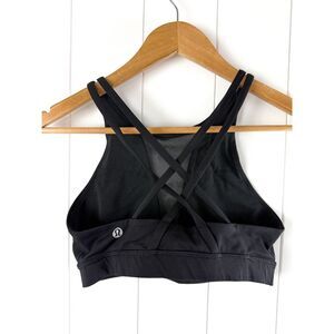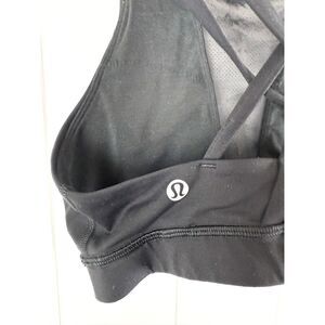 Lululemon Energy Bra Flocked Black DESIGNED FOR TRAINING Size 6 High Neck Mesh