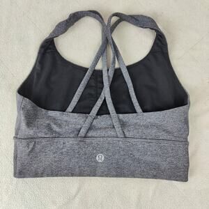 Lululemon Energy Bra Womens 4 Long Line Heathered Black Luxtreme Strappy Back