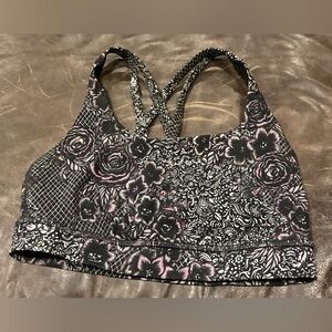 Lululemon Energy Bra-Trellis Bloom Energy Bra Ice Grey Black