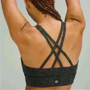 Lululemon "Energy Hi-Neck Longline Touch" Bra Intertwined Camo Print Size 12 EUC
