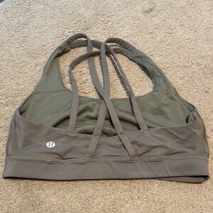 Like new olive green lululemon energy sports bra. Medium support and in excellent condition. Always air dried and no pilling