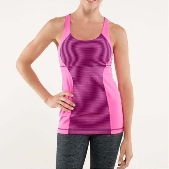 Lululemon Energy Tank Hyper Stripe Raspberry Glo Light/Plum Size 6