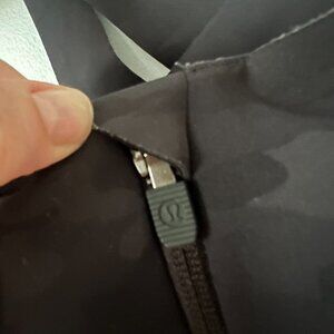 Lululemon Enlite Bra Zip Front Ignite Camo- Women's Size 34C. Black/gray camo, front zip closure, high support, crisscross back straps, molded cups. In good condition.